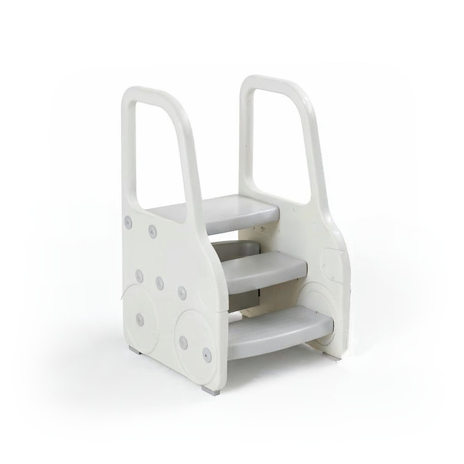 Built with high-quality, durable plastic, the stool features three wide, non-slip steps and secure side handles for added stability. Its solid, tip-resistant design ensures safe climbing, while the rounded edges keep little hands and feet protected.